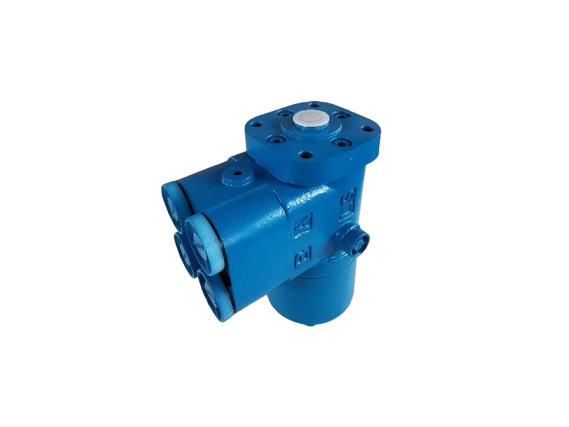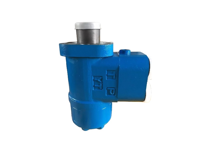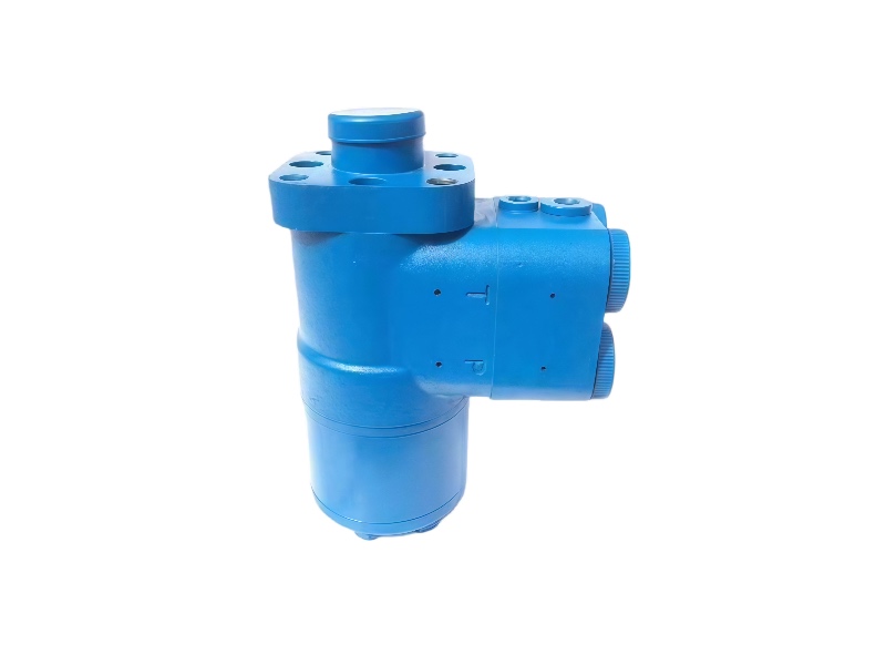 The loader steering valve is the core control component that connects the steering wheel to the steering cylinder. It converts the driver's steering input into hydraulic oil flow through its follow-up valve and metering motor, enabling the machine's steering function.